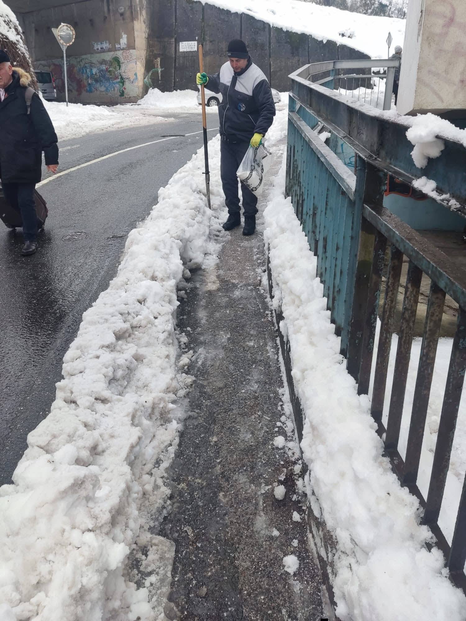 • posipanje soli na trotoarima u ulicama Behdžeta Mutevelića i Kemala Kapetanovića.