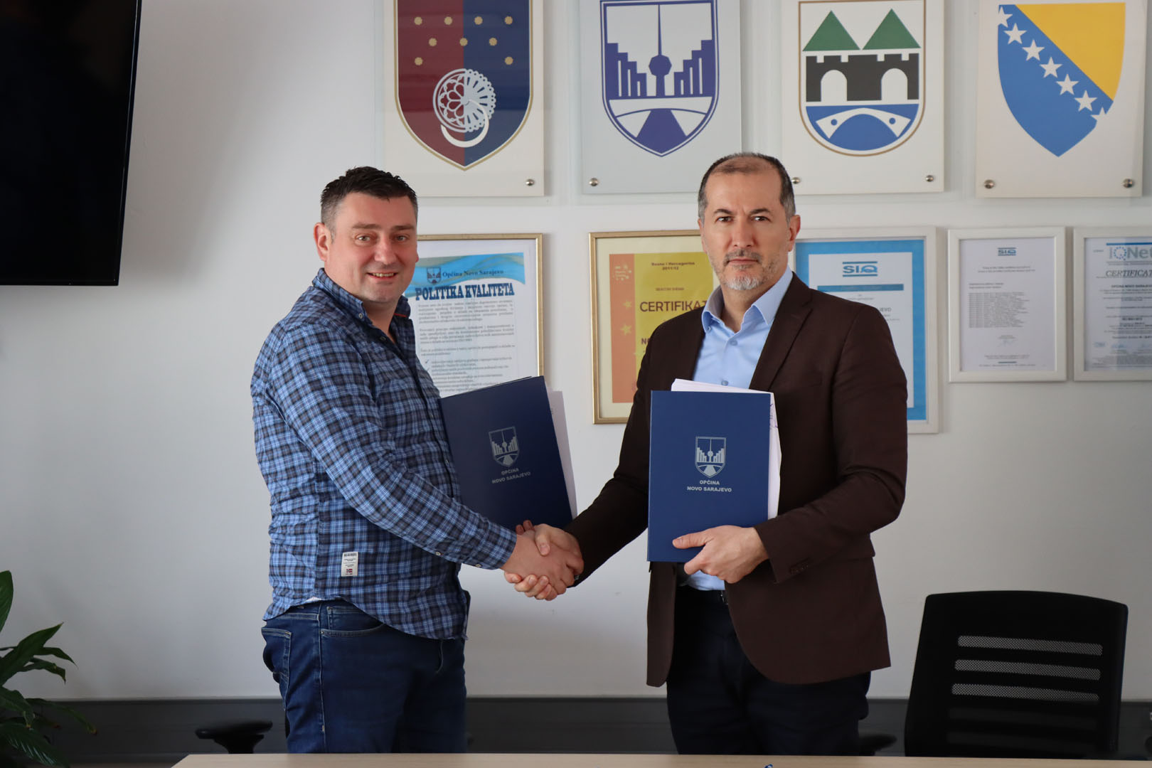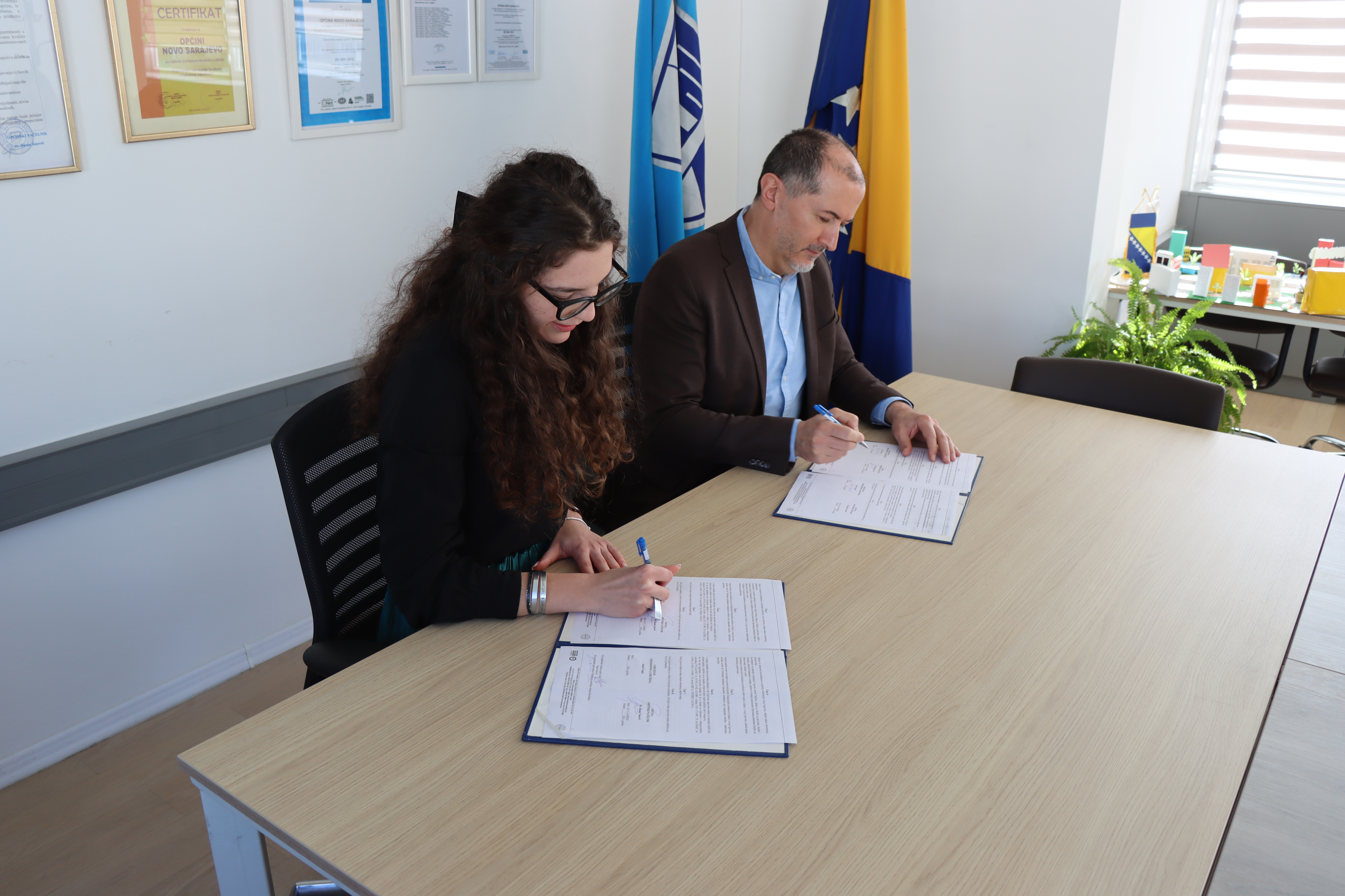 Općinski načelnik, dr. Hasan Tanović i predsjednica Udruženja „Vijeće mladih Općine Novo Sarajevo“, Amila Čengić potpisali su Ugovor o dodjeli finansijskih sredstava - Grant za ...